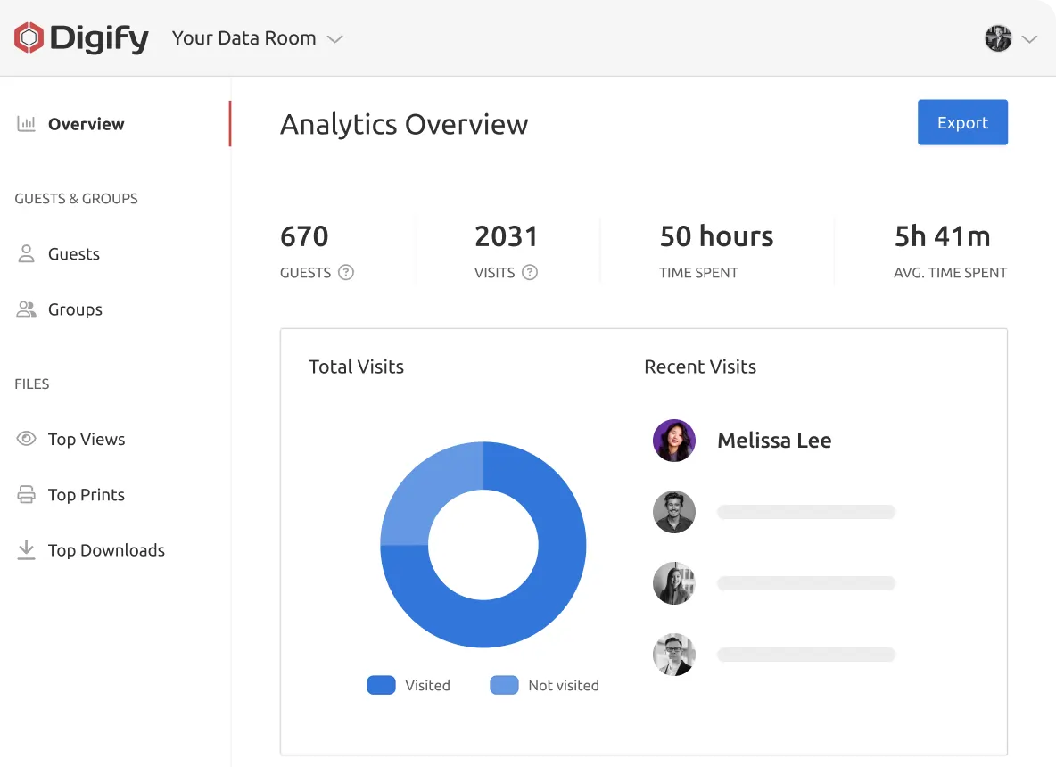“We use Digify to securely send sensitive documents as part of due diligence processes and security reviews. We like to keep our confidential documents close to the chest. With Digify, we are always in control of who has access and who doesn’t.”