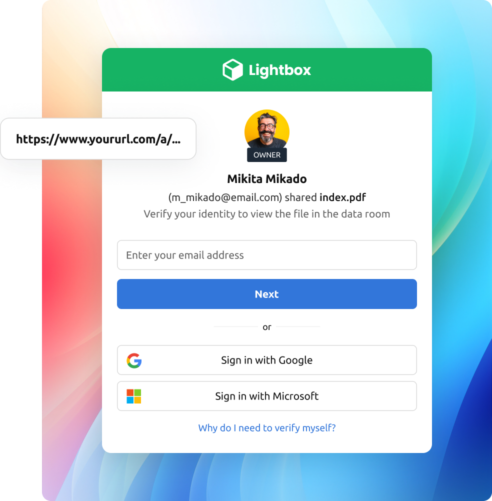 Impress investors, partners, and early customers by hosting data rooms and shared files under your own domain. Strengthen brand credibility and trust by presenting sensitive documents with your company’s logo and identity. -