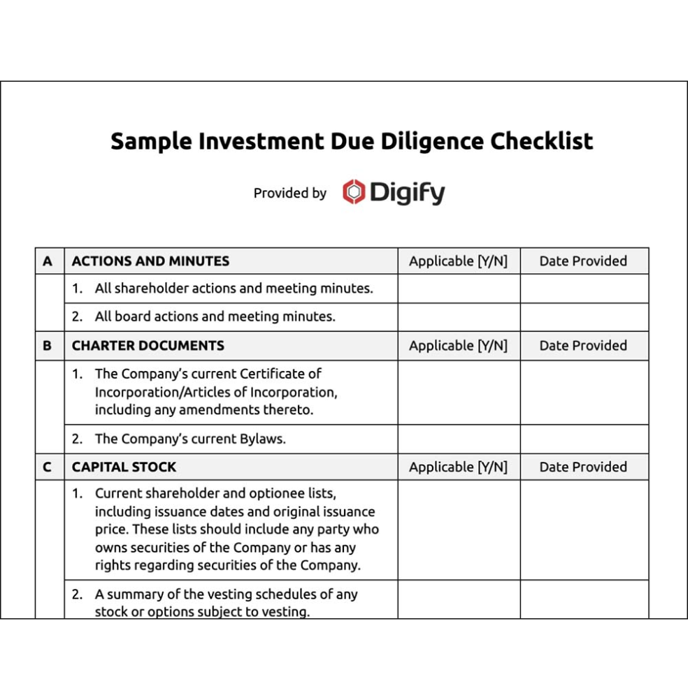By using our due diligence checklist alongside Digify’s virtual data room, you can create a smooth due diligence process that increases your deal success rate.