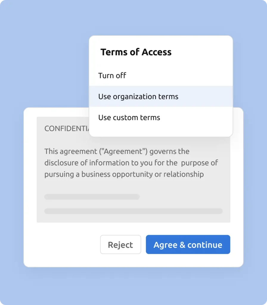 Investors must agree to confidentiality terms before viewing your data room.