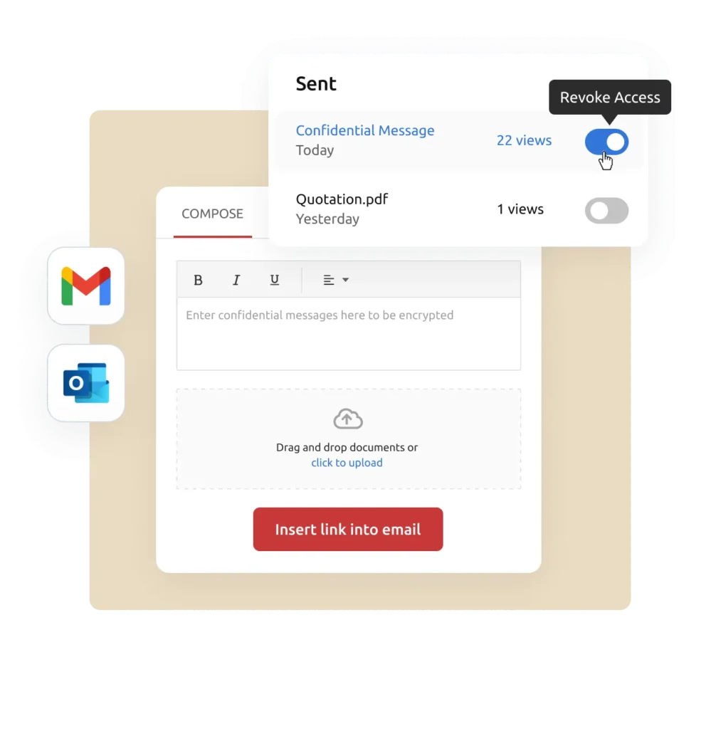 Send secure emails & files in Gmail and Outlook