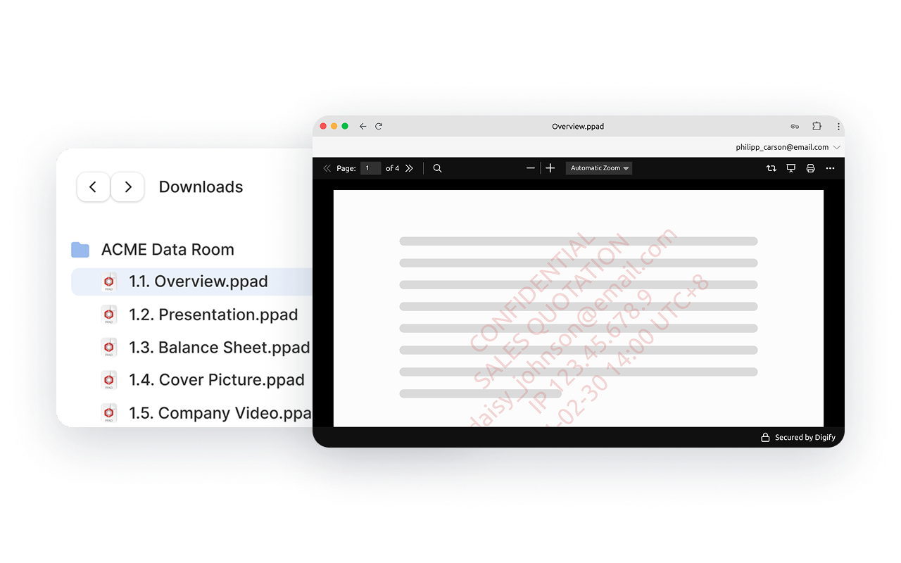 We’re bringing PPAD to data rooms. Guests can download all permitted files in one click, while keeping protection in place. This allows you to stay in control – track views, set expiry, and revoke access anytime.